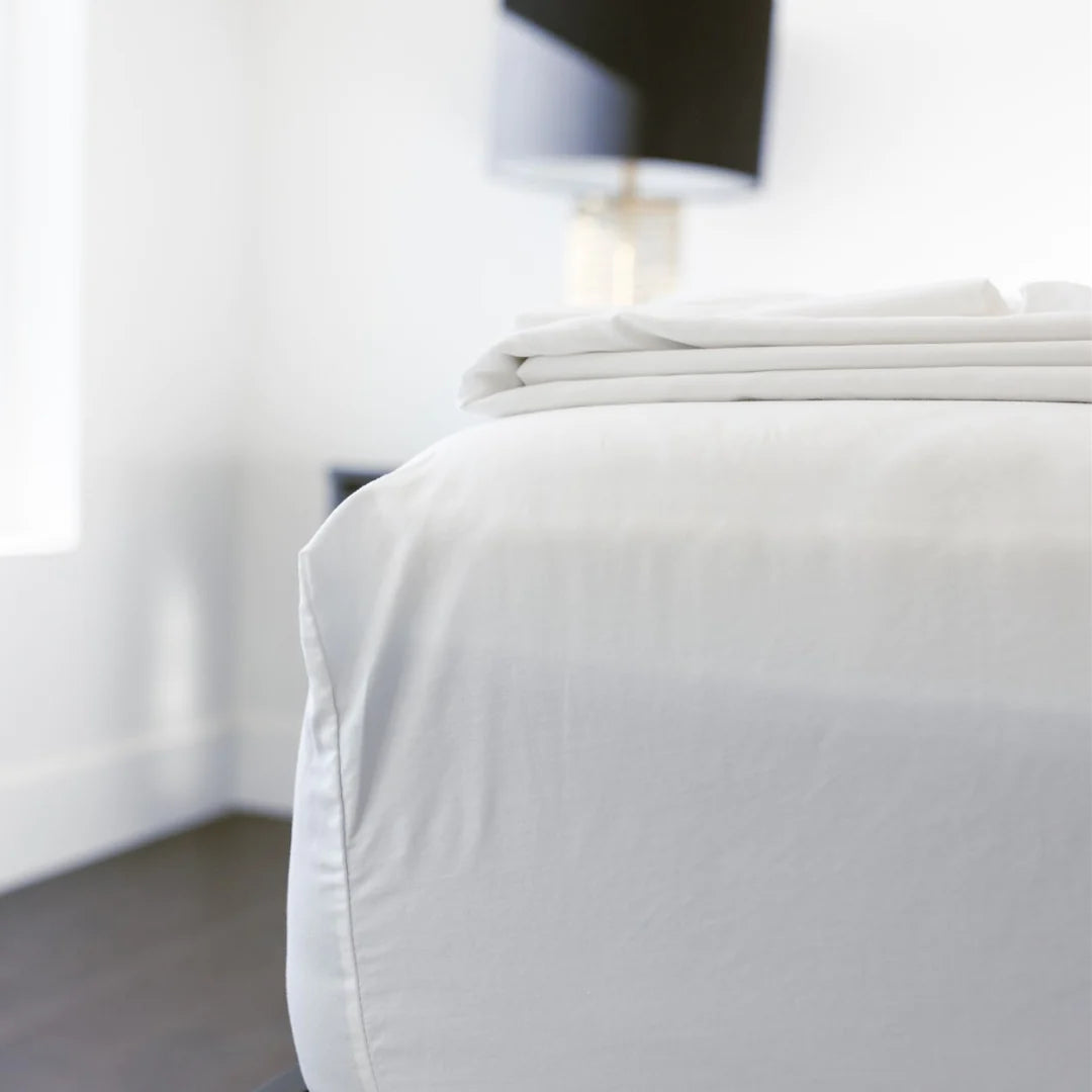 Discover the luxury of hotel-quality sheets at home. Our Percale Duvet Covers are cool, crisp, and perfect for hot sleepers. Renowned for their breathability, these covers are crafted from 300 thread count, long-staple cotton with a unique one-yarn-over, one-yarn-under weave, resulting in a matte finish that defines our brand.